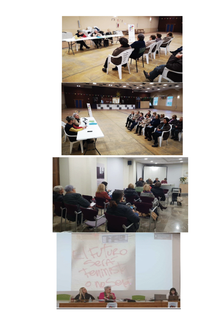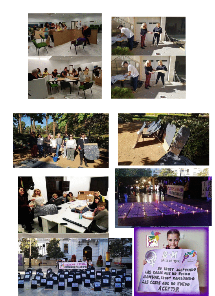 Se crean grupos de trabajo, aunque el principal es el acompañamiento de mujeres y menores víctimas de violencia machista en todo el recorrido de concienciación y denuncia; también el trabajo para trasladar a los medios de comunicación los fallos del sistema y la realidad de dichas mujeres, así como la realización de talleres, conferencias y ponencias en todas las etapas educativas (desde infantil, hasta la Universidad) o para Asociaciones y distintas instituciones. De hecho, colaboramos con universidades como la de Granada o la Universidad Internacional de Valencia para la tutorización de prácticas curriculares en aquellas disciplinas que intervienen con víctimas.